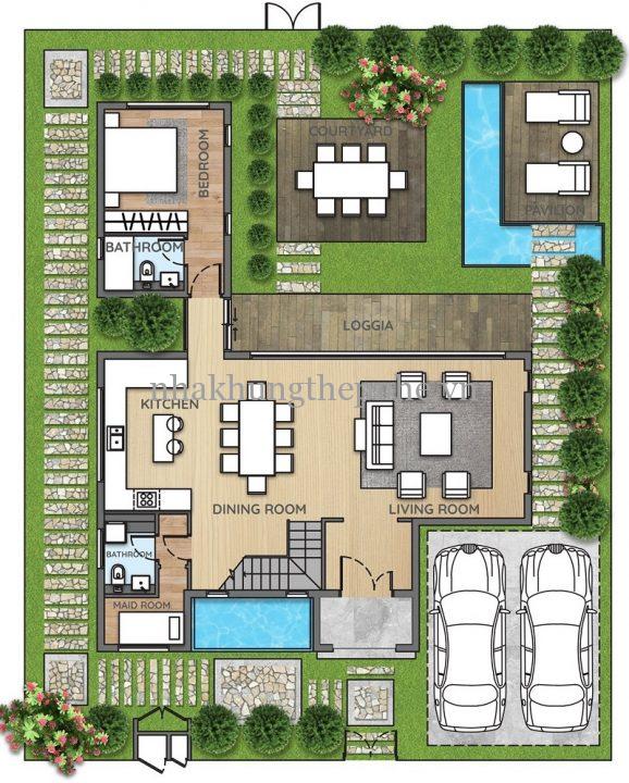 Nhà biệt thự lắp ghép bằng hệ khung thép nhẹ với vật liệu chính là các thanh thép U, C cán nguội độ dày từ 0.8mm-3.0mm , hoàn thiện bằng các tấm vật liệu nhẹ ốp tường, sàn. Các vật liệu chống nóng, cách âm được lắp đặt bên trong tường sàn. Toàn bộ ngôi nhà có thể được lắp ráp thi công hoàn thiện trong vòng từ 30-45 ngày với hệ kết cấu chính được thiết kế dựa trên tiêu chuẩn AISI S100 của Viện sắt thép Hoa Kỳ
